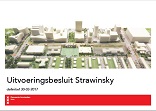 De vereniging en buurtbewoners hebben 24 januari 2017 ingesproken bij de commissie Ruimtelijke Ordening over het Uitvoeringsbesluit Strawinsky. De behandeling in de gemeenteraad vond de volgende dag plaats (zie agendapunt 35). De belangrijkste wens van de vereniging, te weten dat het toekomstige fietspad over de Vijfhoek aansluit op de Minervalaan, is gehonoreerd. De raad heeft een amendement aangenomen waardoor de laatste zin van de voordracht voor de raadsvergadering is gewijzigd in: Een noord-zuid fietspad is gesitueerd aan de westzijde van het verblijfsgebied, ten oosten van de entree tot de fietsparkeergarage. CDA en PvdA stemden tegen. Ook is - unaniem - een motie aangenomen om de mogelijkheden te onderzoeken om aan de noordzijde de bezonning zoveel mogelijk te vergroten door aanpassen van de bouwhoogtes met behoud van de geplande vierkante meters BVO. Er komt meer geld voor speeltoestellen. En er komt permanente geluidmonitoring bij de bouw.