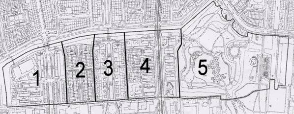 Figuur 3: plangrenzen en indeling plangebied in deelgebieden