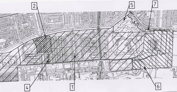 Voor het plangebied vigeren momenteel 4 verschillende bestemmingsplannen en drie herzieningen van een van deze plannen. De begrenzing van de geldende bestemmingsplannen is weergegeven in figuur 1.
