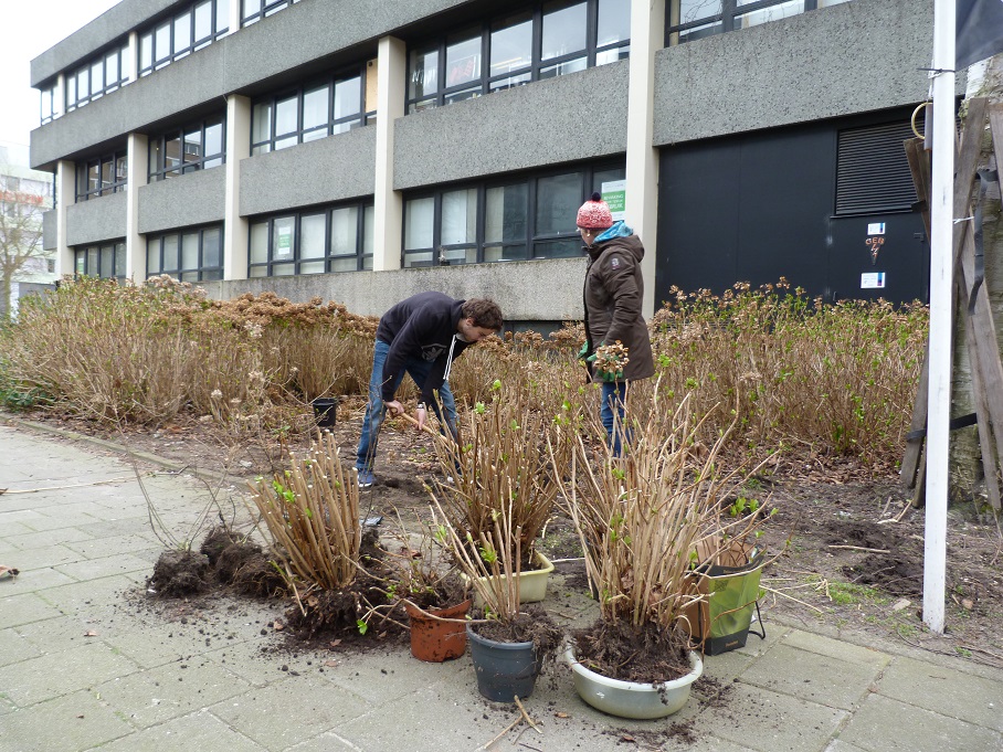 Wegens de verwijdering van het groen rondom het gebouw van de Postcode Loterij heeft de vereniging in overleg met Zuidas een oproep aan buurtbewoners gedaan om in het weekend van 19-20 maart 2016 planten en struiken uit te graven en een tweede leven te gunnen. Op het kaartje is aangegeven waar planten weggehaald mochten worden. Buurtbewoners hebben een aantal prachtige hortensia’s kunnen redden. Op 23 maart 2016 werd het ontwerpbestemmingsplan voor het gebouw in de commissie RO besproken. Bestuurslid Gery Mazeland heeft ingesproken. Meer informatie: Bestemmingsplan Zuidas-Ver- en nieuwbouw Prinses Irenestraat 31-33 vastgesteld.
